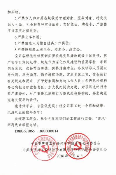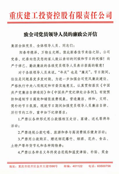 致全司党员领导人员的廉政公开信