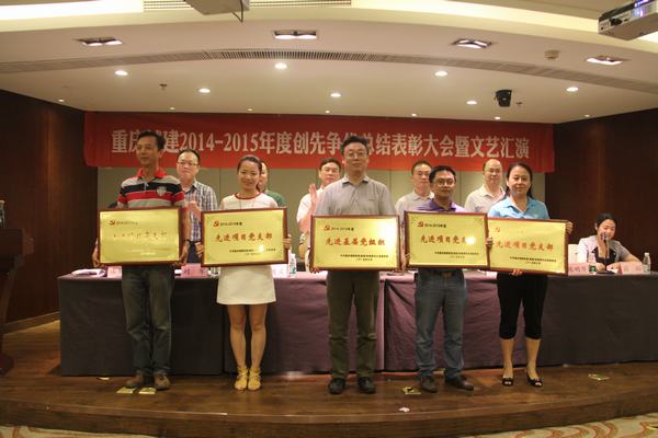 表彰大会由该司总经理徐国庆主持。在雄壮的国歌合唱声中,会议正式开始。党委副书记、纪委书记蔺裕同志宣读《关于表彰2014-2015年度先进基层党组织、先进项目党支部、优秀党务工作者和优秀共产党员的决定》,并对先进集体和个人进行颁奖。爆破分公司党总支、建设分公司柏树堡立交工程项目党支部和桥梁分公司设备租赁分公司优秀党员周权作为先进集体和个人代表作交流发言。