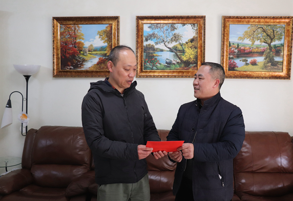 “感谢你为公司的发展做出的努力!”在业务骨干黄亮家,严名平详细询问了他的生活和工作情况,感谢他多年以来扎根基层、全心全意为公司发展所作出的贡献,并鼓励他要加强学习,不断提升自己的专业技术水平和管理能力,更好地为推动企业高质量发展服务。严名平为黄亮送上慰问品和慰问金,并向黄亮的家人致以新春的祝福。黄亮由衷地感谢集团领导在百忙之中来慰问看望自己和家人,表示一定会坚定发展信心,更加努力工作,以实际行动回馈企业关爱。