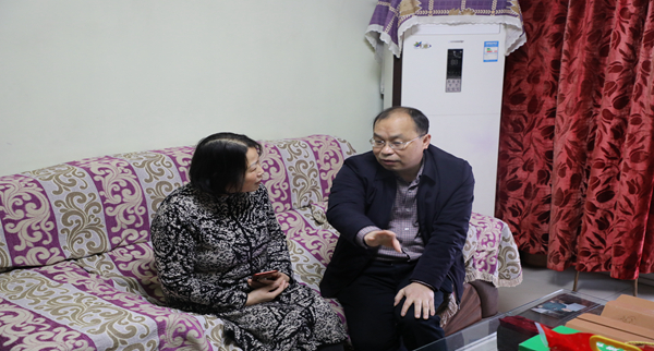 在陶老家中,唐德祥送上慰问金和慰问品,与陶老的亲属亲切握手、暖心交谈,详细询问了解老人的身体状况、饮食起居,以及家中是否有需要组织帮助的地方。在得知陶老身体状况和家中情况一切都好后,唐德祥感到非常高兴。