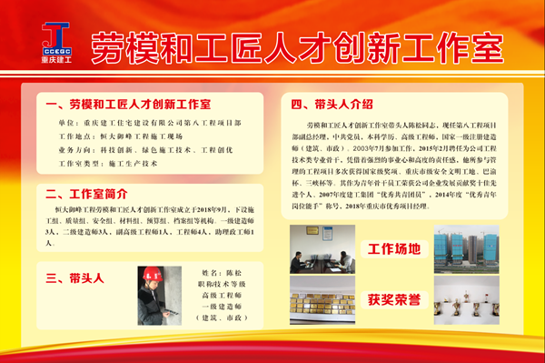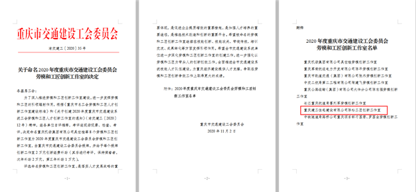 近日,重庆市交通建设工会颁布2020年劳模与工匠创新工作室命名文件,共命名7家“劳模创新工作室”和1家“工匠创新工作室”,其中,住建公司的职工创新工作室代表集团参与市交通建设工会系统评比,经过初评和复评等阶段,从参评的多个创新工作室中脱颖而出,被重庆市交通建设工会正式命名为“陈松工匠创新工作室”,是市交通建设工会系统此次评选中唯一命名的“工匠创新工作室”。