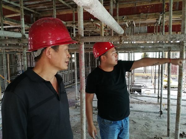 他是隆鑫鸿府B地块工程项目的一名安全员,和他的同事们每天穿梭于楼层钢管丛林中,仔细巡查着每一个生产环节——脚手架、支模架、卸料平台的搭设是否符合要求,临边防护是否到位,楼层洞口是否封闭等等一系列的安全工作。