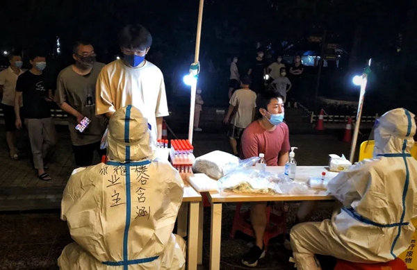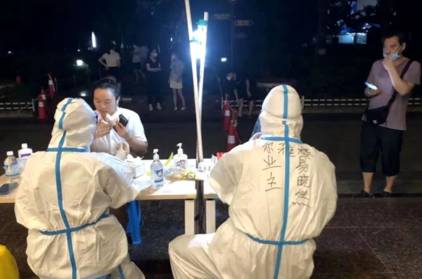 建材物流公司志愿者深夜协助医护人员开展核酸检测
