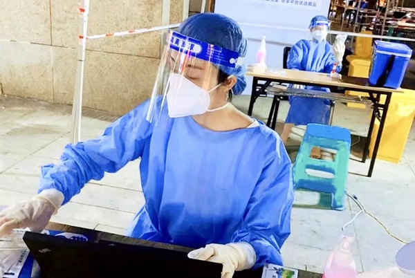 三建公司志愿者在袁家岗社区采集社员核酸信息