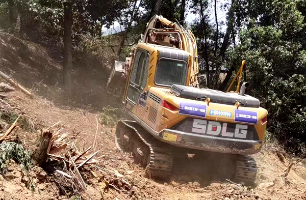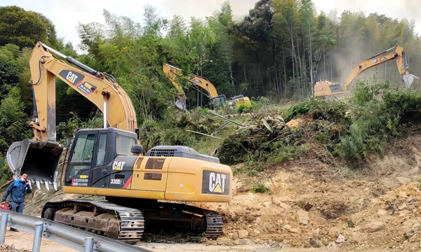 城建集团火速抽调挖掘机及工人出发参与巴南区界石西线防火隔离带作业