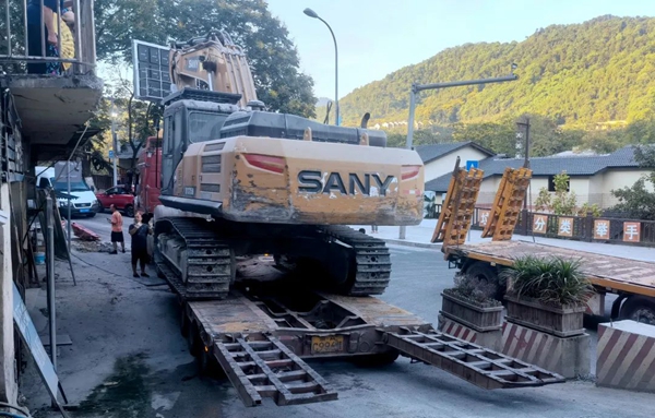 市政一公司抽调挖机设备离开项目驻地奔赴灭火现场