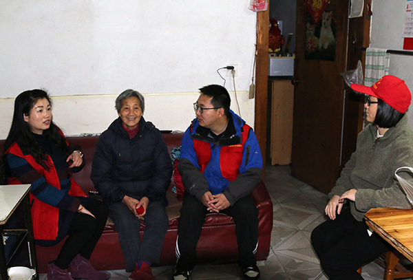“红马甲”又来到社区的空巢老人家中,送去了慰问品和关怀问候,陪老人聊天、拉家常。老人的脸上露出了灿烂的笑容,激动地说“家里平时就我一个人居住,儿女都不在身边,你们还能想到我这个孤老太婆,谢谢你们了!”