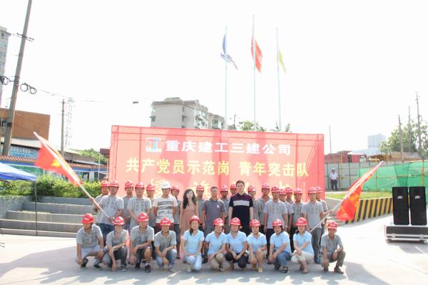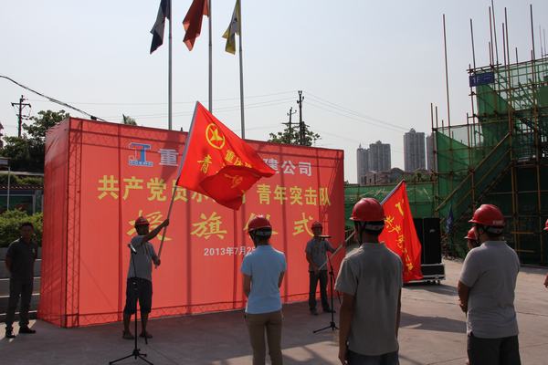 仪式上,阎姝宣读了公司“关于成立万科凤天路项目青年安全生产监督岗、青年突击队”的批复文件;邓宏和建设单位代表为项目党员示范岗、青年突击队授旗;建设单位、监理代表分别讲话,祝贺项目成立党员示范岗、青年突击队,同时希望与项目继续精诚合作,同休戚,共进退;青年突击队代表邹云鹏同志带领全体队员们宣誓,誓词响彻云霄,表达了队员们“勇挑重担、冲锋在前、吃苦在前、争创典型,贡献青春”的强烈愿望。