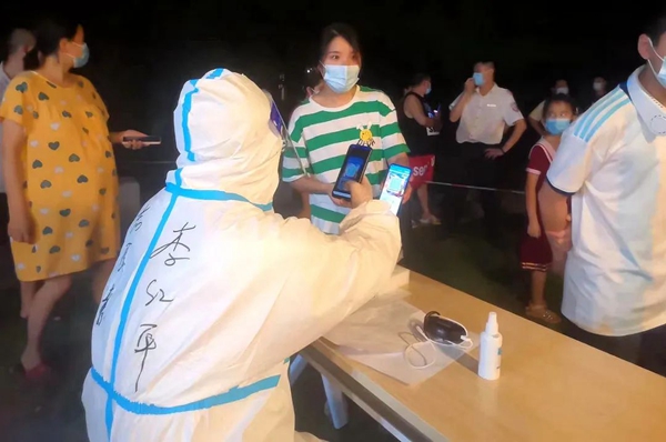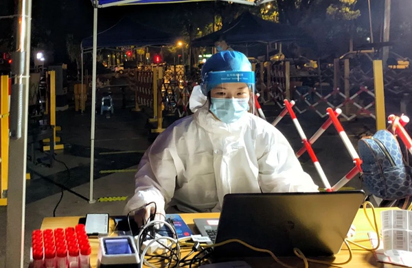 二建公司志愿者正录入居民核酸二维码信息