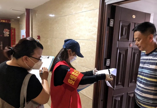 城建集团志愿者顶着40度的高温“扫楼”,收集居民信息数据