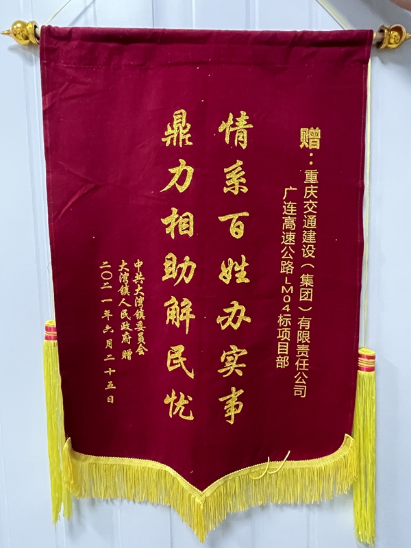 “非常感谢重庆交建集团对大湾镇的帮扶!”“感谢你们重庆交建对我们麻步村建设做出的贡献!”这是大湾镇广连办副主任成国彬、广东英德大湾麻步村村委书记蔡国兴分别代表广州大湾镇人民政府、英德大湾麻布村委特地在七一来临之际,对重庆交建广连LM04标项目部在“镇企共建”“村企共建”中积极主动解决当地群众“急难愁盼”问题表示衷心的感谢。