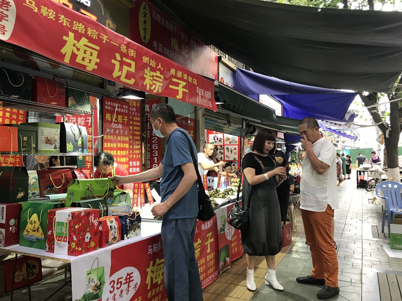 “我妈包的传统尖尖粽最好吃。”九建公司退休职工马天利说,“老人家如今动作慢了,属于半退隐江湖了,但端午前她老人家还是要坚持包一下粽子。当年老妈就是靠包粽子贴补了不少家用,不然哪有我们现在的好日子嘛。”1989年居住在马鞍东路原重庆第九建筑工程公司职工宿舍的李婆婆为贴补家用,把自己包的粽子拿到宿舍门口摆摊子,外带卖一些咸菜。1992年同住13号大院的马婆婆、梅婆婆和任婆婆三位加入到“婆婆粽子团”,随着生意渐好,这条街上卖粽子的也慢慢多了起来,粽子一条街渐成气候。正是这4位“开山老祖”让清香滑糯的传统手工粽子走进了越来越多成都人的生活。虽然现在老街上再也看不见几位婆婆的身影了,但粽香依旧,老人们的儿女扛起了传承几十年的“粽子江湖”,马鞍路的粽子传奇还在延续。