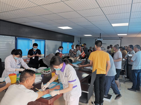 重庆中粮祥云赋项目部积极贯彻执行三建公司2020年工程劳务用工安全体检与服务工作部署,6月1日,项目部特邀北碚区北碚合美家医院的医护人员来到项目部,为300余名项目人员送上免费体检“大礼包”。体检项目包括血常规、心电图、肝功能等常规检查。体检过后,医务人员还就新冠肺炎疫情防控相关知识对农民工进行现场培训,耐心解答各种健康问题。