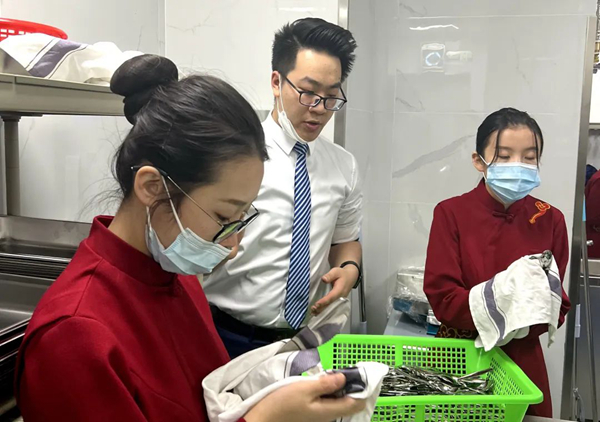 2021年10月,当收到北京2022年冬奥会的支援通知后,作为酒店西厨房冷厨主管的雷邦奎和餐饮部副经理的佐刘休兴奋不已,积极主动请缨前往历练。最终,雷邦奎凭借出色的厨艺成为北京冬奥会餐厨工作人员,佐刘休也凭借参与过博鳌亚洲论坛支援,对客服务专业到位,在冬奥会为非注册记者提供用餐服务。