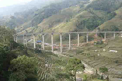 磨夺寨大桥位于蛮耗至金平金水河口岸二级公路A标段,为主线跨沙衣河而设。孔跨布置为21孔30米预应力混凝土连续T梁桥。大桥平面位于半径为251米的左转曲线上,其立面纵坡为5.7%。由于施工前期便道未通,材料运输给施工带来了极大的困难,在该司领导、业主、监理等相关部门的大力支持下,项目经理桑培亮带领大家针对大桥梁的特殊情况,制订了合理的施工方案:一是专项攻坚方案,把施工计划落实到天、落实到人、倒排工期做到天天有计划,人人有责任;二是针对云南的特殊气候组织专业运输车队运输材料,确保原材料充足;三是组织精英骨干,精良设备24小时到岗到位,保证大桥施工正常进行。同时,在项目经理桑培亮带领下,大家采用人背马托的方式运输施工材料,早上天刚蒙蒙亮运输材料的人员就准备好干粮,开始背柴油、水泥、碎石等材料,就这样一背一挑的背抬,一方方的混凝土浇灌了下去,一根根桩基浇筑成型,一排排墩柱屹立在沙衣河上。