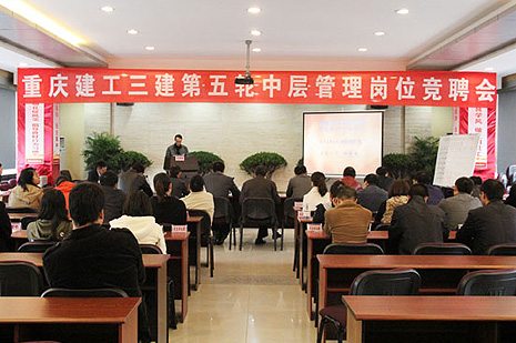 11月4日下午,三建公司历时近一个月的第五轮中干竞聘会顺利结束。来自公司及社会的43名经资审合格的报名者参加了38个岗位的竞聘。
