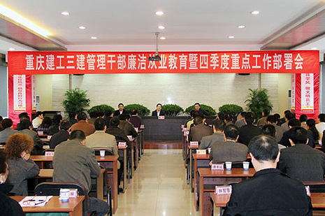 10月28日,三建公司管理干部廉洁从业教育暨四季度重点工作部署会在二楼报告厅隆重举行。公司领导班子、机关及二级单位负责人、项目经理、书记共90余人参加了本次会议。会议由该司党委副书记、纪委书记伍绍明主持。
