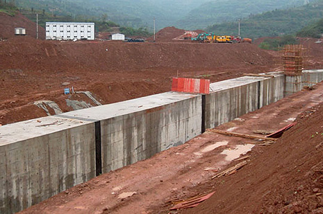 箱涵工程全长1094.61米,为现浇钢筋混凝土结构,流水断面4.1×6M,沟槽开挖深度10米之深,土石方量20m³,钢筋2100T,混凝土15000m³,工程6次穿过原河道,防洪排水及其困难。整个箱涵工程,按业主重庆城投公租房公司的要求必须在10月31日前完成。