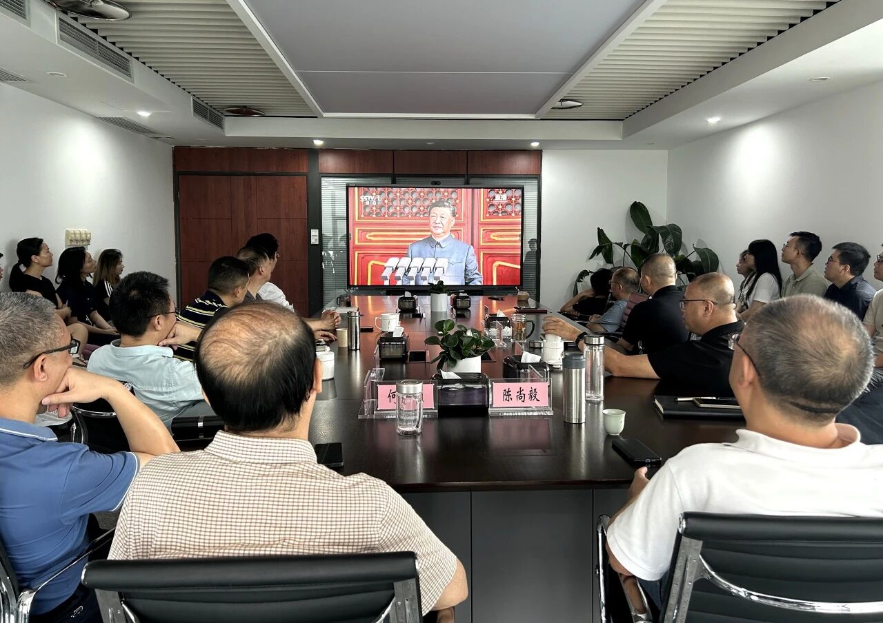 9月3日,纪念中国人民抗日战争暨世界反法西斯战争胜利80周年阅兵式在北京天安门广场隆重举行。集团各级党组织集中收看直播,设观看主会场1个,分会场352个,党员干部职工、农民工、产业工人共计20000余名通过电视、网络、移动终端等多渠道同步观看阅兵盛况,共同铭记历史、缅怀先烈、珍爱和平、开创未来。