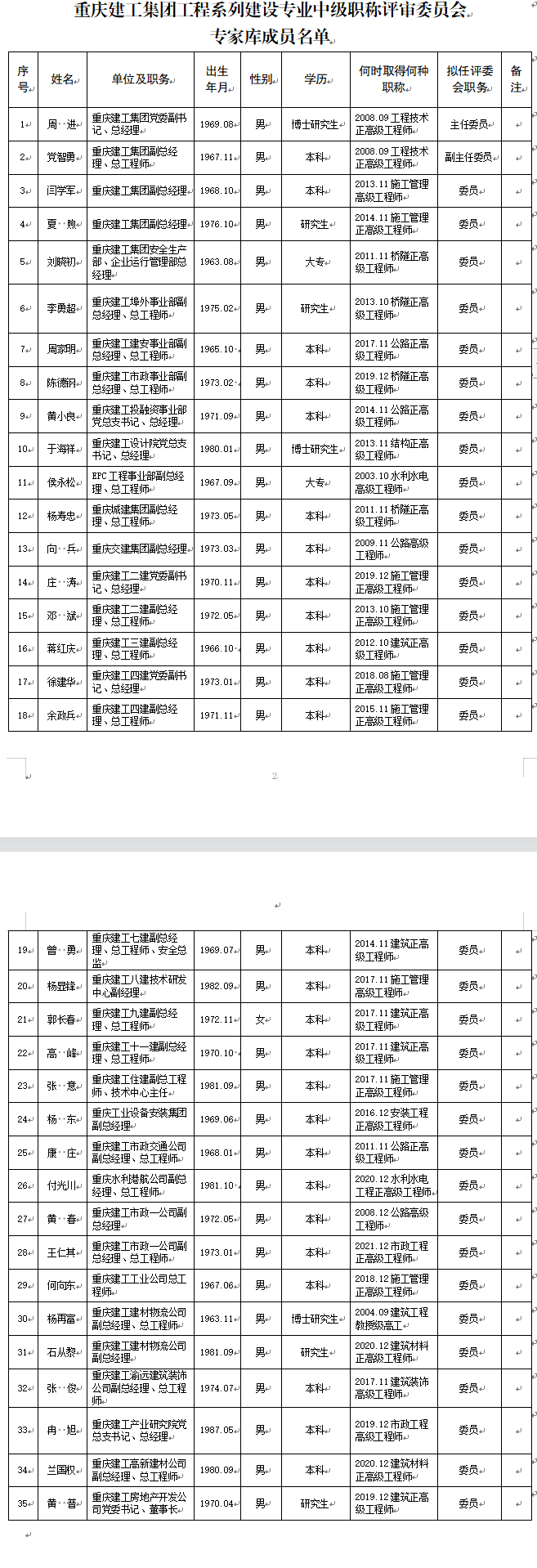 附:bv伟德源自英国始于1946集团工程系列建设专业中级职称评审委员会专家库成员名单