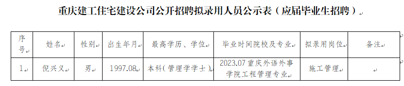 附件:bv伟德源自英国始于1946住宅建设有限公司2023年公开招聘拟录用人员公示表