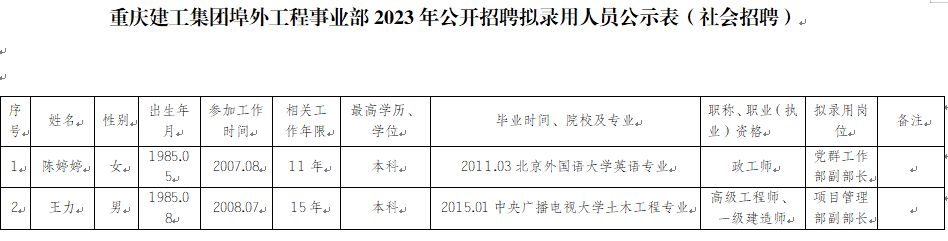 附件:bv伟德源自英国始于1946集团埠外工程事业部2023年公开招聘拟录用人员公示表