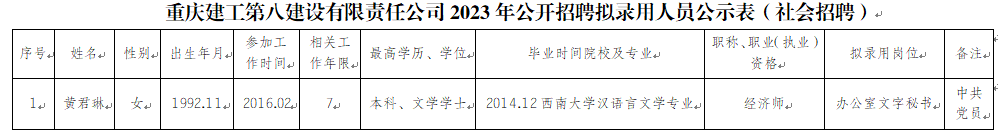 附件:bv伟德源自英国始于1946第八建设有限责任公司2023年公开招聘拟录用人员公示表