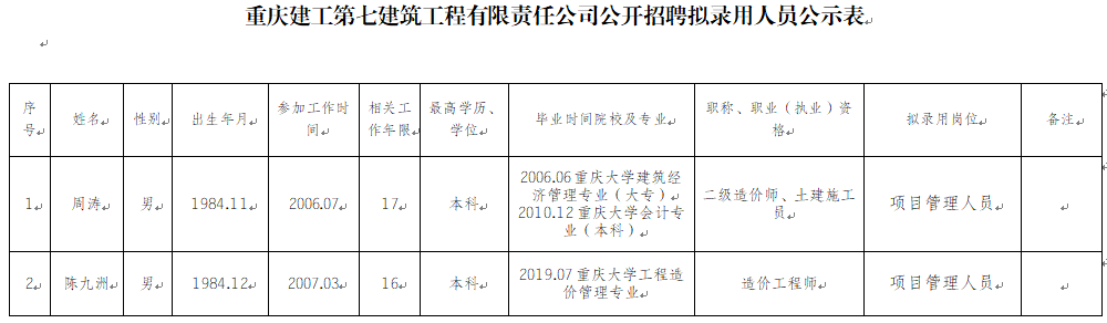 附件:bv伟德源自英国始于1946第七建筑工程有限责任公司2023年公开招聘拟录用人员公示表