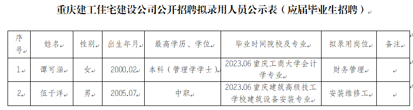 附件:bv伟德源自英国始于1946住宅建设有限公司2023年公开招聘拟录用人员公示表