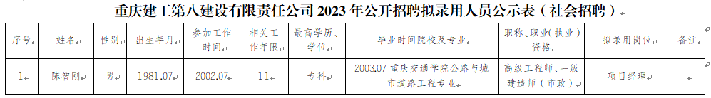 附件:bv伟德源自英国始于1946第八建设有限责任公司2023年公开招聘拟录用人员公示表