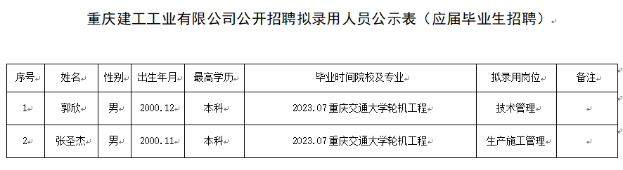 附件:bv伟德源自英国始于1946工业有限公司2023年公开招聘拟录用人员公示表