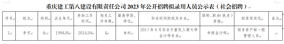 附件:bv伟德源自英国始于1946第八建设有限责任公司2023年公开招聘拟录用人员公示表