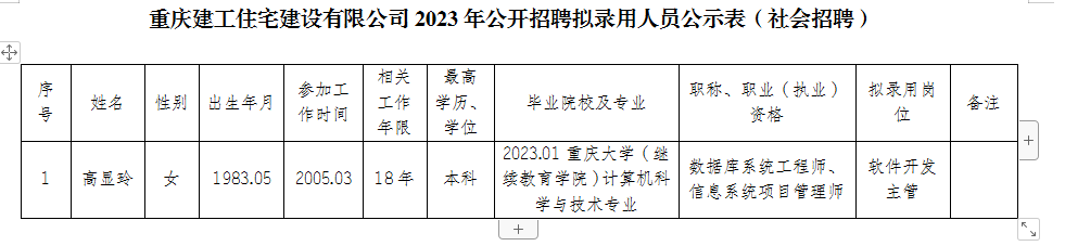 附件:bv伟德源自英国始于1946住宅建设有限公司2023年公开招聘拟录用人员公示表