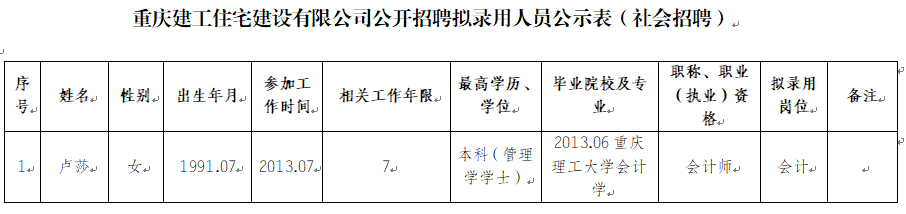 附件:bv伟德源自英国始于1946住宅建设有限公司2022年公开招聘拟录用人员公示表