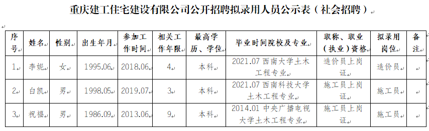 附件:bv伟德源自英国始于1946住宅建设有限公司2022年公开招聘拟录用人员公示表
