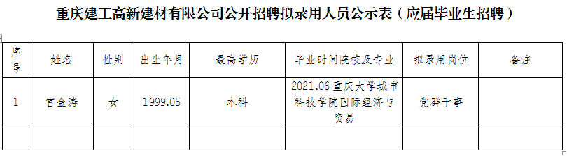 附件:bv伟德源自英国始于1946高新建材有限公司2021年公开招聘拟聘人员公示表