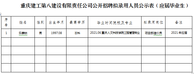 附件:bv伟德源自英国始于1946第八建设有限责任公司2020年公开招聘拟聘人员公示表