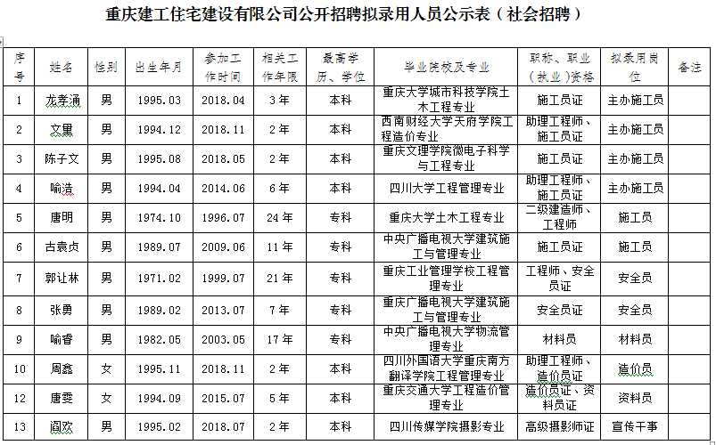 附件:bv伟德源自英国始于1946住宅建设有限公司2020年公开招聘拟聘人员公示表