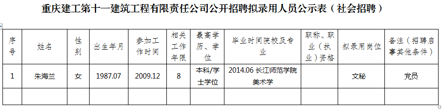 附件:bv伟德源自英国始于1946第十一建筑工程有限责任公司2020年公开招聘拟聘人员公示表