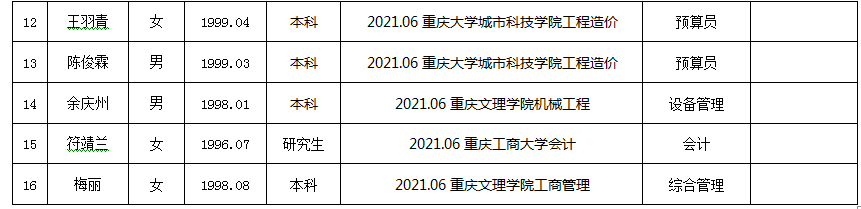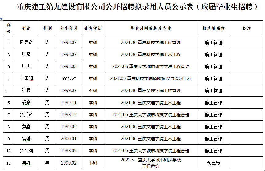 附件:bv伟德源自英国始于1946第九建设有限公司2020年公开招聘拟录用人员公示表