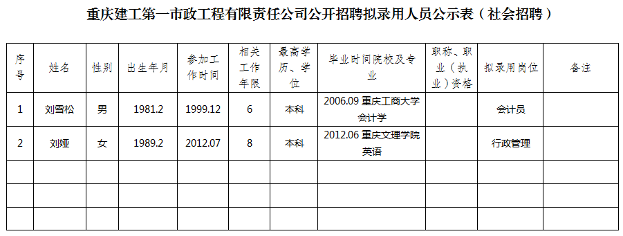 附件:bv伟德源自英国始于1946第一市政工程有限责任公司2020年公开招聘拟聘人员公示表