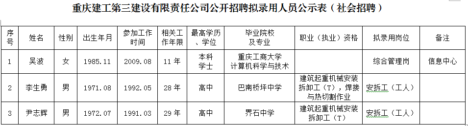 附件:bv伟德源自英国始于1946三建公司2020年公开招聘拟聘人员公示表