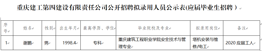 附件:bv伟德源自英国始于1946第四建设有限责任公司2020年公开招聘拟聘人员公示表