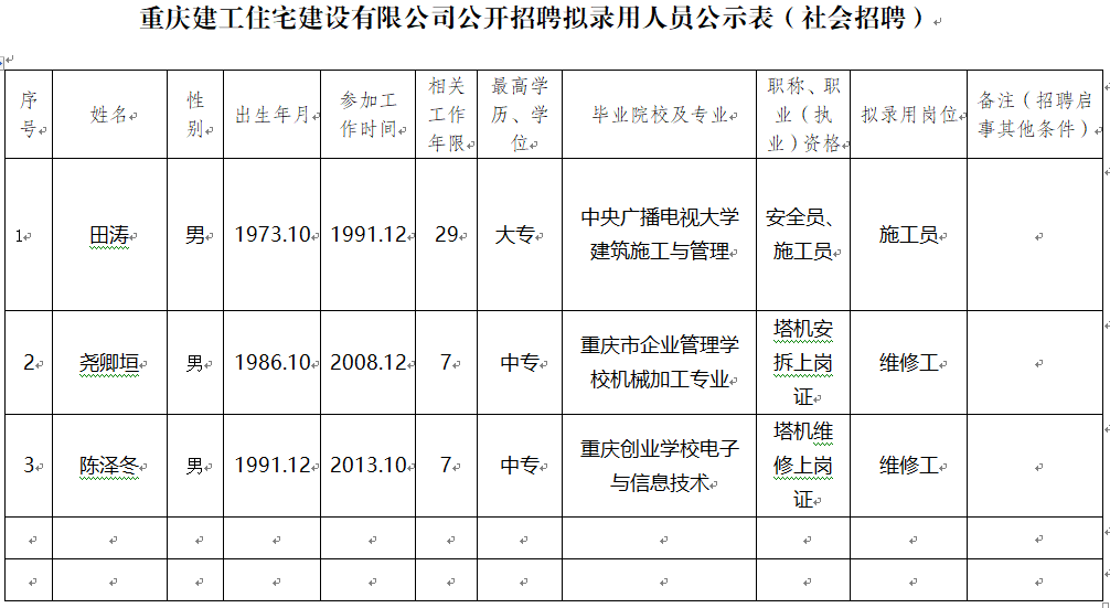 附件:bv伟德源自英国始于1946住宅建设有限公司2020年公开招聘拟聘人员公示表