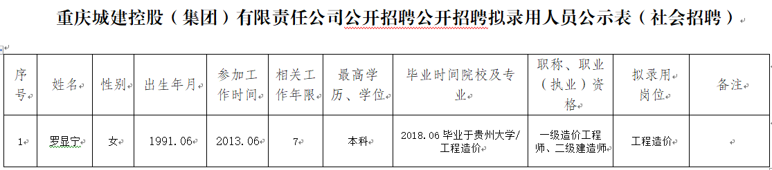 附件:重庆城建控股(集团)有限责任公司2020年公开招聘拟聘人员公示表