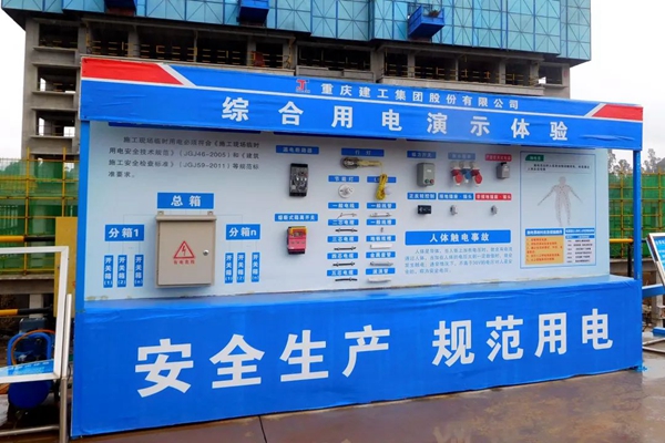 安全教育现场化。项目部设置了安全帽撞击体验、综合用电演示体验及平衡木体验等安全教育培训体验区、VR安全体验馆,以三维动态的形式全真模拟出工地施工真实场景和险情,体验者“亲历”施工过程中可能发生的各种危险场景,安全教育生动形象,寓教于乐。
