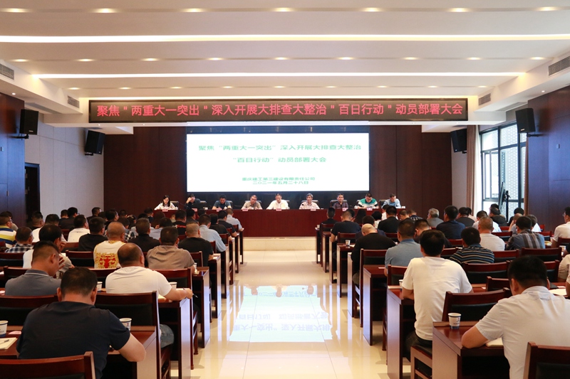 5月28日下午,三建公司召开聚焦“两重大一突出”深入开展大排查大整治“百日行动”动员部署大会。”公司党委副书记、总经理赵质彬等班子成员以及相关职能部门、项目部负责人共140人参会。