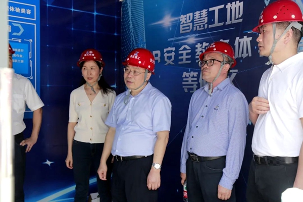 唐德祥深入施工现场,听取了项目整体推进运行情况汇报,仔细检查了项目安全生产措施和“两单两卡”工作落实情况,详细了解了项目部实名制管理系统、远程视频监控、违章行为自动抓拍报警系统、机械设备安全监测预警系统以及自动冲洗系统和BIM技术在本项目的集成运用,重点参观了项目部智慧管控平台,对住建公司在装配式技术应用、智慧工地建设、新工艺新技术推广应用等方面取得的成绩给予充分肯定,并提出指导意见建议。