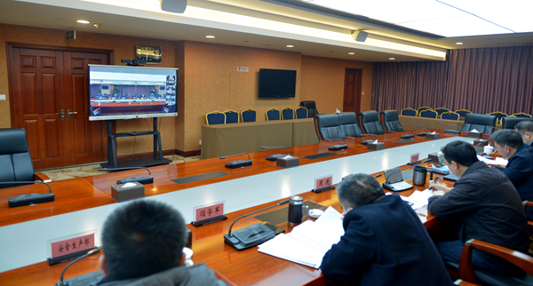 集团相关职能部门负责人在产业大厦四楼会议室参加会议,所属各单位主要领导、分管领导和相关职能部门负责人通过视频系统参加了本次会议。