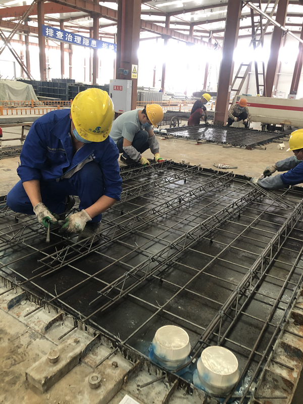 在公司严格的保障措施下,申请复工复产的人员得到了园区管委会的大力支持,复产一周,复工人员达到了正常生产时期人员总量的一半,但生产产量仍然满足不了施工现场需求。公司积极主动与各项目业主及总包方沟通,重新准确统计各项目构件需求量,每天电话跟踪各复工项目工期进度,根据项目现场需求,统筹各型号构件生产,精细规划各班组的工作任务,对车间内重点工序,重点生产节点派专人跟踪检查,确保生产节点受控,尽量保证每个复工项目的施工进度。